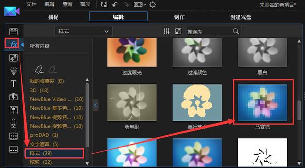 3、在效果室里面選擇樣式--馬賽克。如圖: