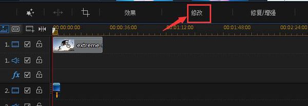 5、選中視頻2軌道,點(diǎn)擊修改。