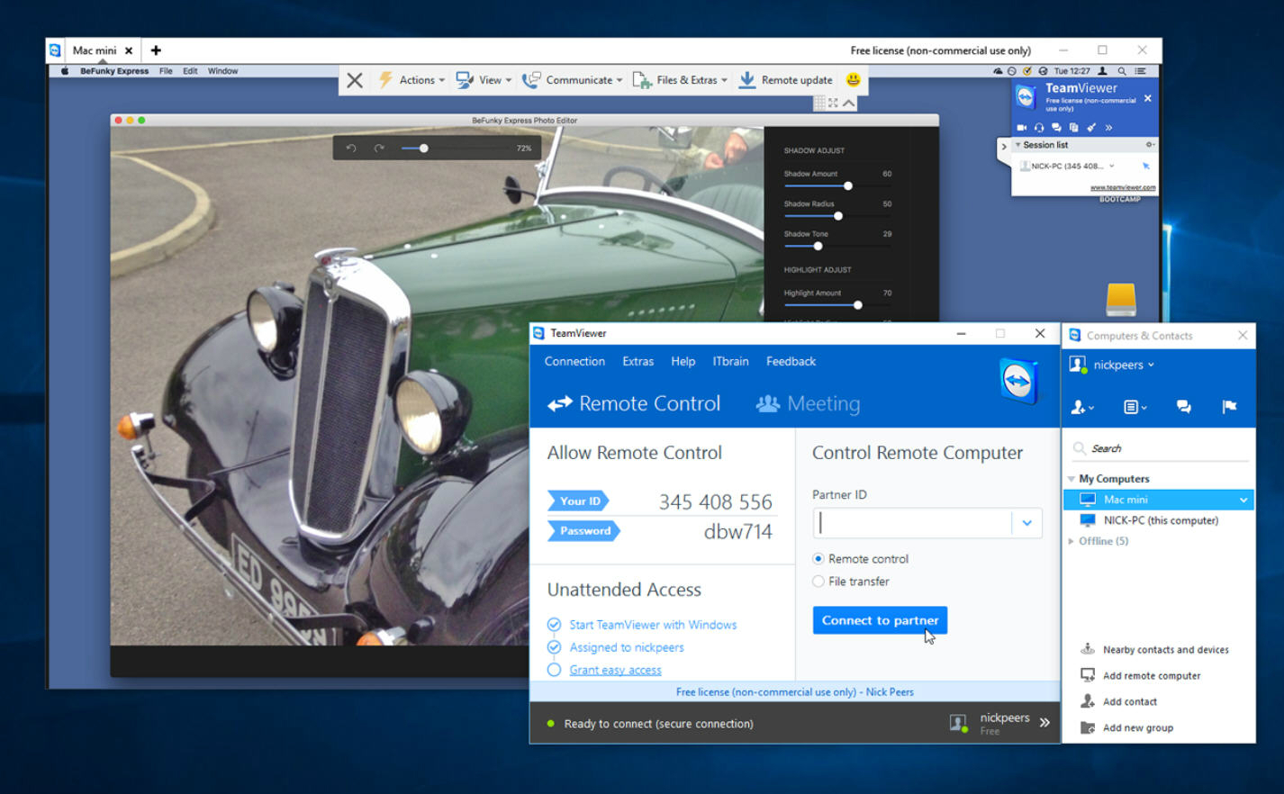 不同于其他軟件的單向控制,通過TeamViewer連接起來的兩臺計算機(jī)可以進(jìn)行互相控制。