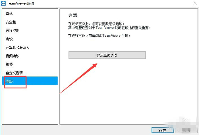 2、選擇高級,并顯示高級選項