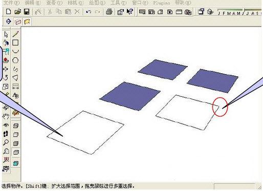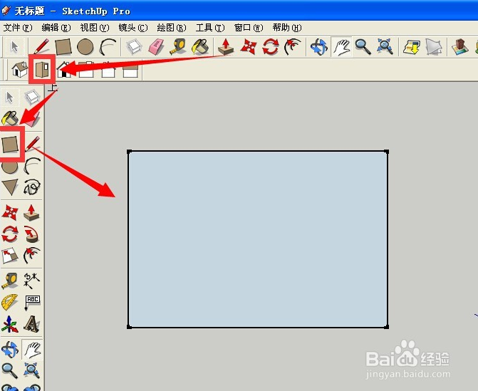 打開sketchup8.0在頂視圖下點(diǎn)擊矩形工具 繪制一個(gè)矩形 并設(shè)置尺寸 效果及步驟如下箭頭所示