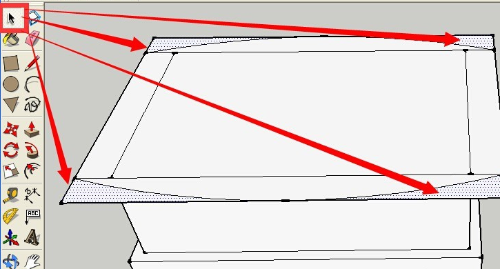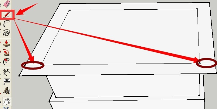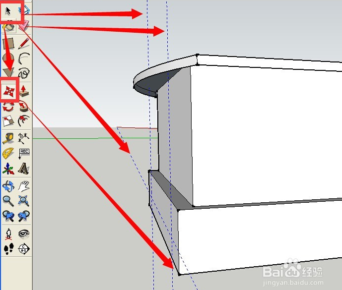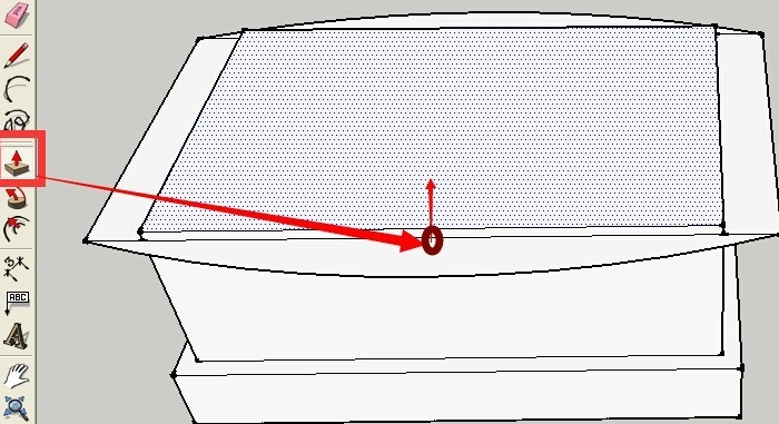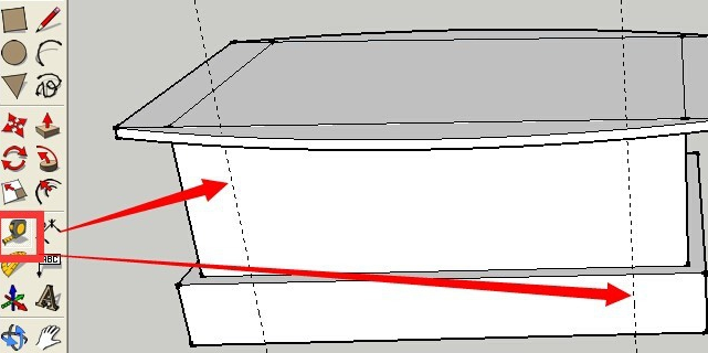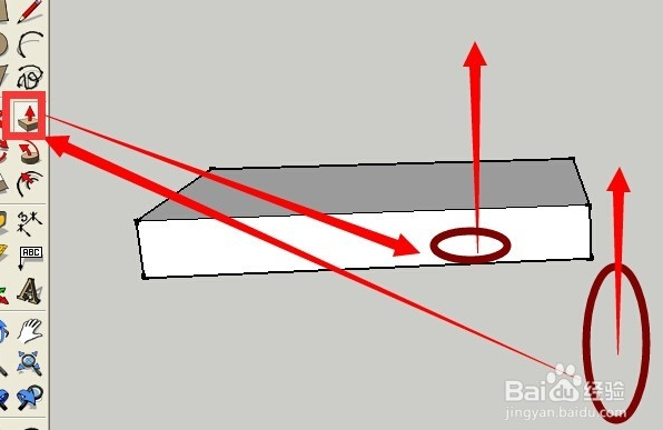 刪除后的效果如下 點(diǎn)按推拉工具 再次用推拉工具推拉出一個(gè)向上的高度 效果如下所示