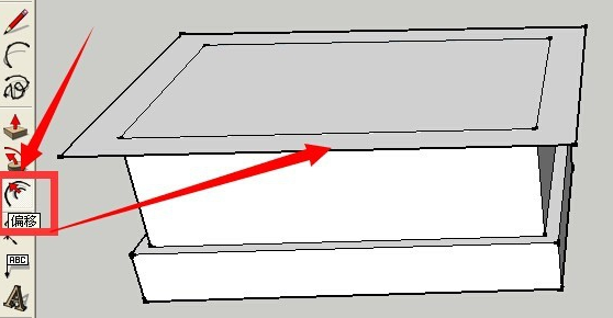再次選中偏移工具 鼠標(biāo)點(diǎn)擊頂面 并拖動(dòng)出一個(gè)向外的偏移 鍵盤設(shè)置偏移量后點(diǎn)按回車確定