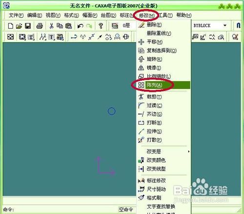點(diǎn)擊修改以后,會(huì)出現(xiàn)下來菜單,然后移動(dòng)鼠標(biāo)在修改下拉菜單上面找到陣列,并用鼠標(biāo)點(diǎn)擊陣列