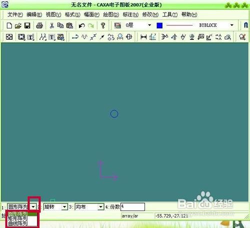 在陣列設(shè)置窗口上面鼠標(biāo)點(diǎn)擊左邊的圓形陣列后面向下的箭頭,下拉選擇陣列的類型