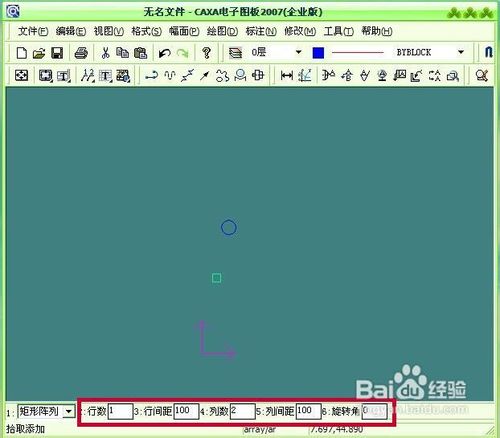 按照上面的方法依次把行數(shù)后面的行間距,列數(shù),列間距輸入相應(yīng)的數(shù)據(jù),行數(shù)指的是上下的個(gè)數(shù),列數(shù)指的是左右的個(gè)數(shù),行間距指的是上下之間的中心距離,列間距指的是左右之間的中心距離。