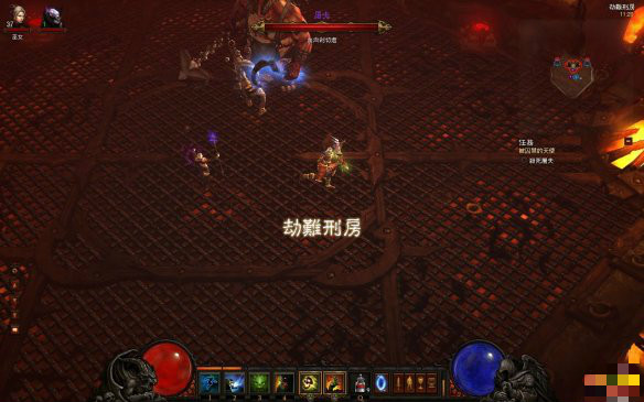 骷髏王作為游戲的第一個(gè)BOSS,并沒有太大的難度,下面的截圖是困難模式下的圖。那么我現(xiàn)在來研究下怎么更容易的擊殺他呢。