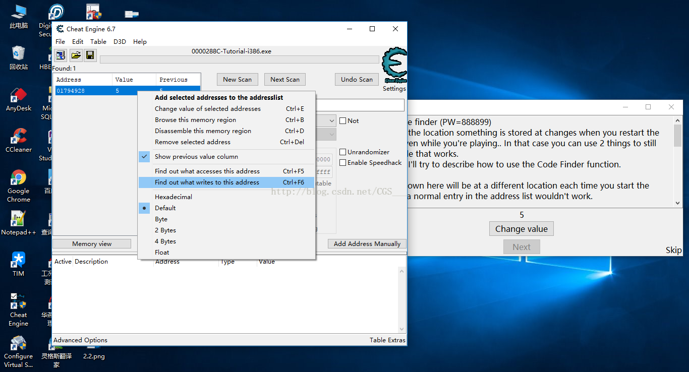 a)首先尋找Change Value改變值這一操作的Address,這一步與前面的介紹的步驟相同,不再描述,如下圖: