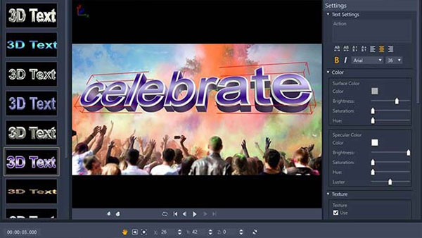 通過新的標(biāo)題可能性吸引觀眾。從預(yù)設(shè)開始或在3D標(biāo)題編輯器中創(chuàng)建自定義動(dòng)畫,控制光照,紋理等。