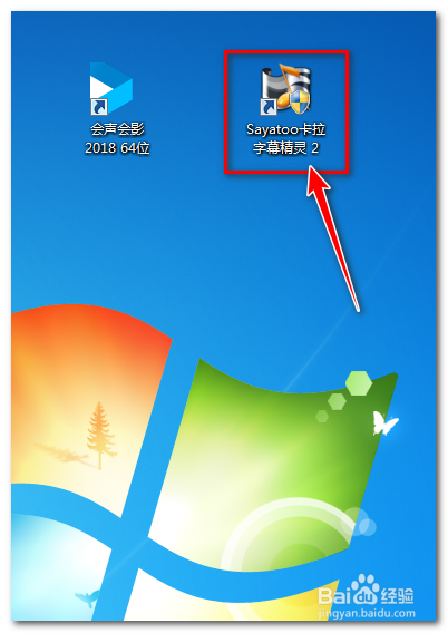會(huì)聲會(huì)影如何關(guān)聯(lián)傻丫頭字幕文件在桌面找到傻丫頭卡拉字幕精靈2軟件圖標(biāo)。