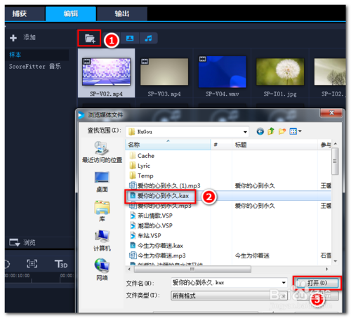 點(diǎn)擊導(dǎo)入文件很驚喜的發(fā)現(xiàn)可以顯示kax文件,當(dāng)然就可以順利導(dǎo)入到會(huì)聲會(huì)影軟件中了。