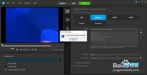導(dǎo)出完成后,會(huì)彈出導(dǎo)出完成對(duì)話框,點(diǎn)擊ok即完成了視頻的導(dǎo)出。