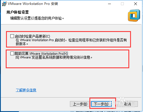 本窗口是用戶體驗(yàn)設(shè)置,根據(jù)個(gè)人需要可以勾選和不勾選。點(diǎn)擊下一步。