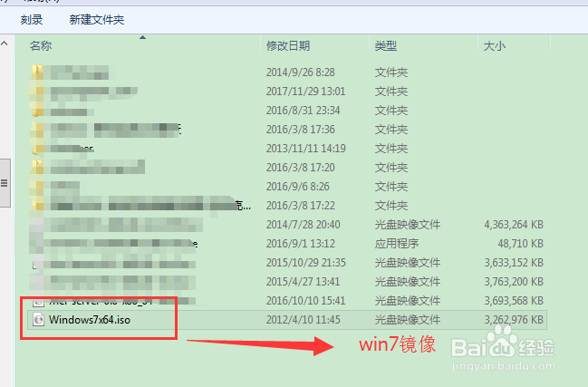 首先準(zhǔn)備windows7鏡像iso,如下圖所示