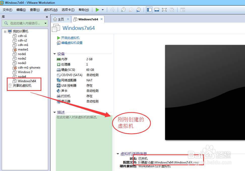 返回到VMware主界面,左邊就會(huì)多出一個(gè)剛剛創(chuàng)建的虛擬機(jī)