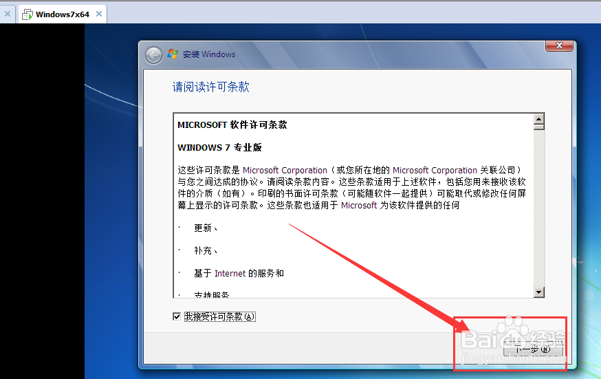 在下一個(gè)窗口,勾選 我接受許可協(xié)議中的條款,點(diǎn)擊下一步