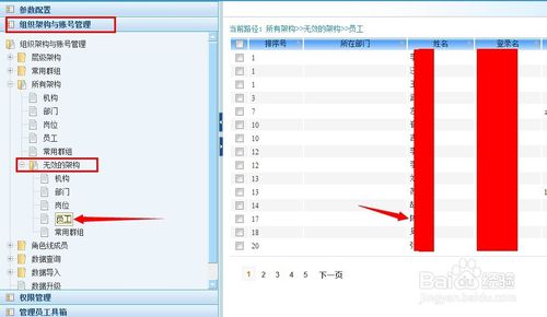 首先打開系統(tǒng)管理的后臺,打開“組織架構(gòu)與賬號管理”——“無效的架構(gòu)”——“員工”。點擊打開需要重置的員工姓名,如圖所示。