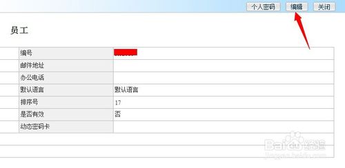 在打開的員工編輯窗口,找到是否有效項,設(shè)置為“是”。