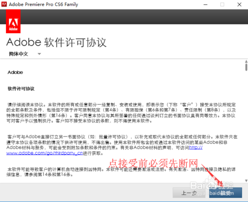 點擊【試用】,接著點【接受】,建議這個時候斷網(wǎng)