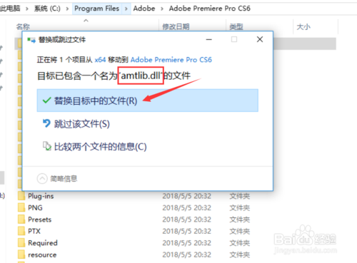 將之前下載的破解文件amtlib.dll替換至Adobe Premiere CS6程序目錄內(nèi),例如我是默然裝在C盤就是這個目錄下C:\Program Files\Adobe\Adobe Premiere Pro CS6