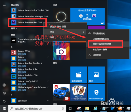 如果桌面上沒有Adobe Premiere CS6的啟動圖標,按如下方式將圖標復制至桌面即可,也可在程序目錄中將圖標復制出來