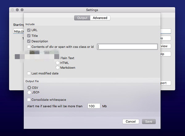 在WebScraper輸出面板中,您可以選擇希望實(shí)用程序從網(wǎng)頁中提取的信息類型:URL,標(biāo)題,描述,與不同類或ID關(guān)聯(lián)的內(nèi)容,標(biāo)題,頁面內(nèi)容各種格式(純文本,HTML或MarkDown)和最后修改日期。