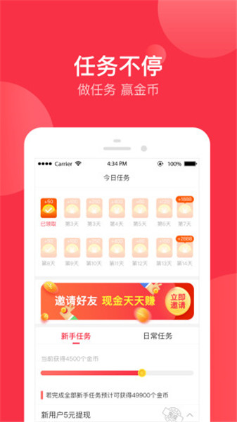 4、完成每日任務,可獲得現(xiàn)金獎勵。