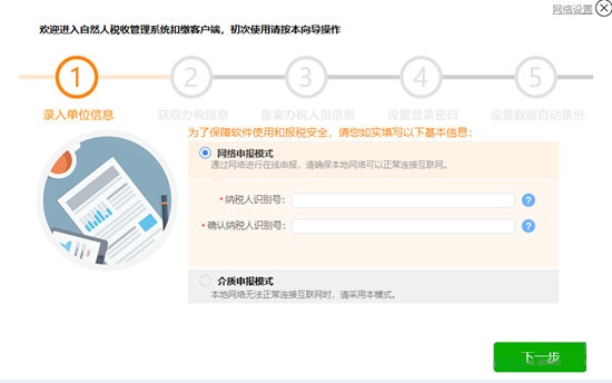 軟件安裝完成后,首先需要進(jìn)行系統(tǒng)初始化注冊。初始化注冊的過程,即是通過稅號從稅局網(wǎng)絡(luò)上獲取最新的企業(yè)信息,保存到本地客戶端的過程。