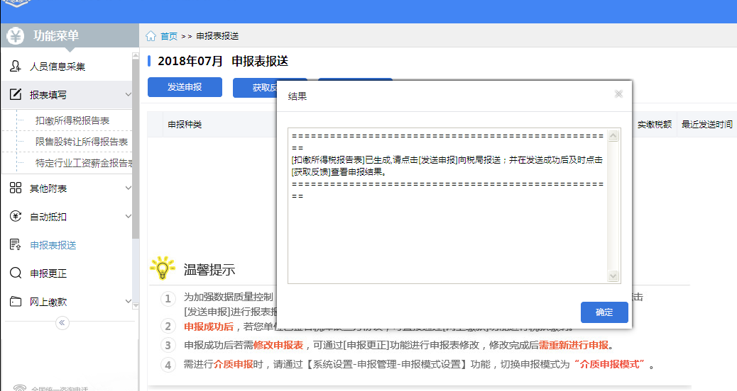 單位從客戶端導(dǎo)出一個(gè)介質(zhì)申報(bào)包,拿到大廳申報(bào),將介質(zhì)包導(dǎo)入金三,導(dǎo)出一個(gè)反饋文件,單位將反饋文件導(dǎo)回軟件里面,完成本月申報(bào)。