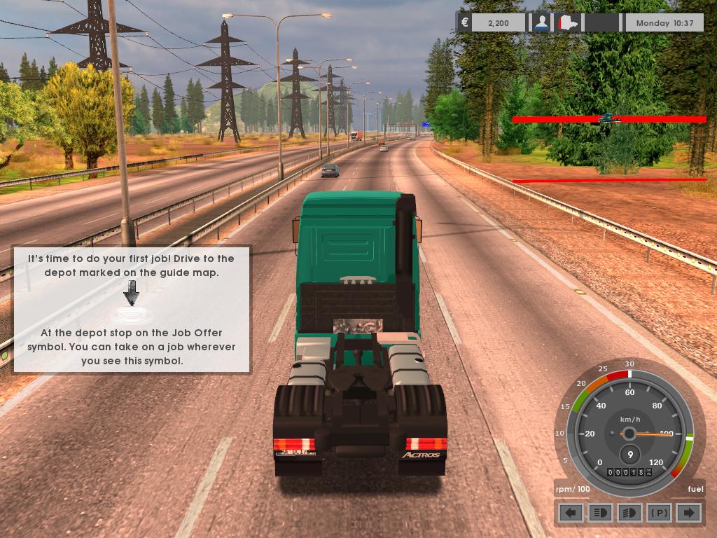 游戲中玩家的主要任務就是在兩地之間進行運輸工作,從而獲取資金來購買升級自己的卡車。1、初始階段,玩家需要在卡車商店中選購自己的車,初始資金為20萬,還是綽綽有余的,選完后即可開始接受任務了。