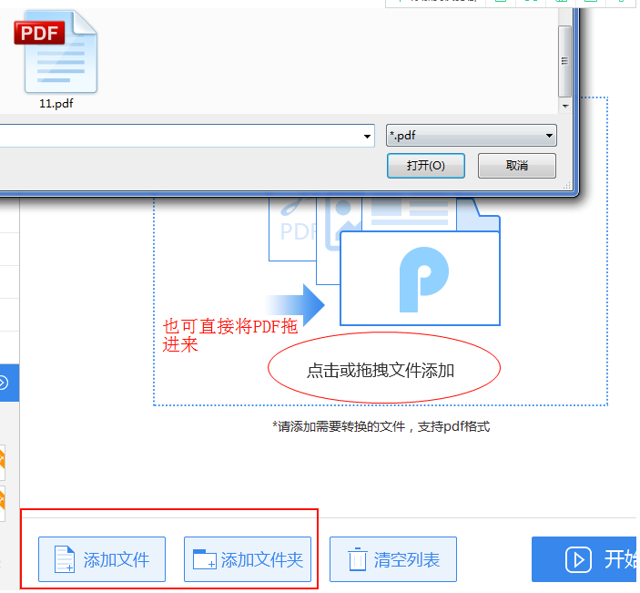 2、選擇好格式之后,將要提取頁(yè)面的PDF文件添加進(jìn)來(lái);