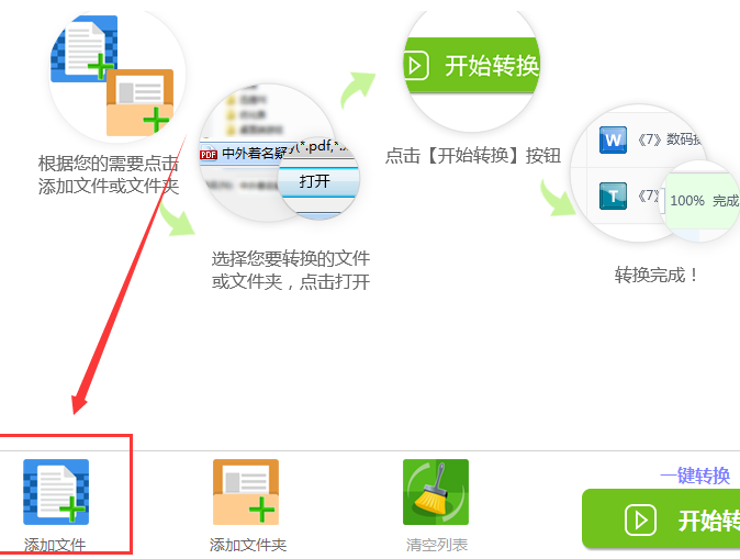 2、接下來(lái)需要點(diǎn)擊“添加文件”按鈕,將需要進(jìn)行轉(zhuǎn)換的Word文件添加到軟件的界面當(dāng)中。