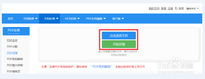 接下來(lái)就是上傳想要壓縮的文件了,上傳好后,點(diǎn)擊“開(kāi)始?jí)嚎s”。