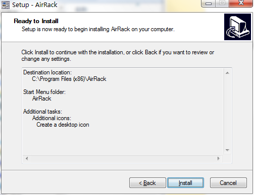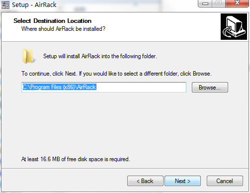 4、對軟件的安裝位置選擇,默認(rèn)位置“C:\Program Files (x86)\AirRack”,建議安裝在D盤,點(diǎn)擊Next;