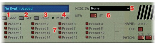 4)MIDI 信號指示燈:指示虛擬樂器模塊收到 MIDI 消息。