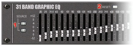 圖示均衡器連接在功放之前,用來調(diào)節(jié)聲音的頻響細(xì)節(jié)。本圖示均衡為 31 段,可存儲 4 個預(yù)設(shè)。