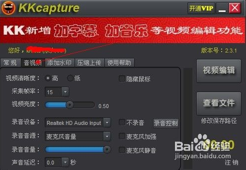 音頻設(shè)置,可以調(diào)試所錄制的視頻效果。