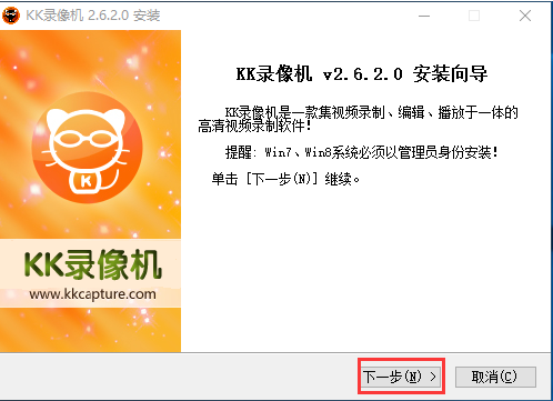 安裝1、打開下載的KK錄像機(jī).exe文件,點(diǎn)擊下一步;