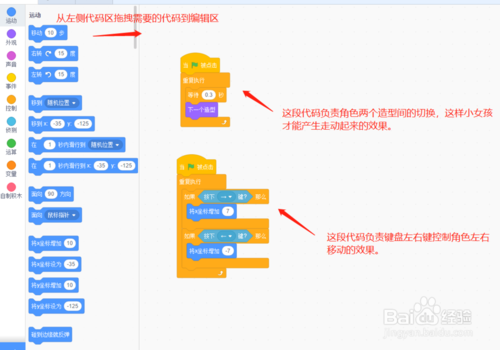 拖動鼠標滾輪,還可以在不同分類的積木塊中切換