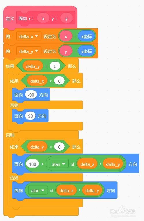 現(xiàn)在來使用新建的積木塊,讓角色面朝指定的坐標吧: