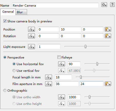選擇菜單欄的Cameras標簽,然后選擇屬性欄的General頁簽