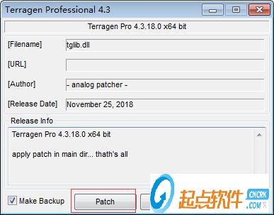 將注冊機復制到安裝目錄下,運行注冊機,點擊patch,默認目錄:C:\Program Files\Planetside Software\Terragen 4