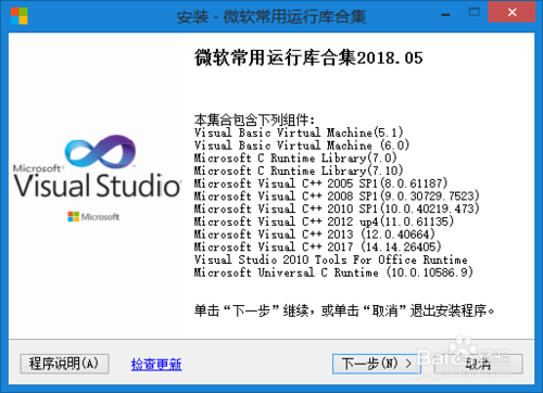 此外,VC++2015/2017運(yùn)行庫(kù)安裝包中包含KB2999226/KB3118401補(bǔ)丁包,所以,還可以通過(guò)安裝VC運(yùn)行庫(kù)來(lái)來(lái)解決問(wèn)題:
