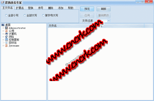 君揚文件改名專家是款簡單方便的批量改名工具,根據(jù)不同的選項或規(guī)則,批量修改文件名,擴展名,大小寫方式改名,序號方式改名,插入和刪除部分名字等。