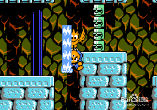 跳躍中要注意不要被水沖下去,等水流過之后,我們?cè)偬S。