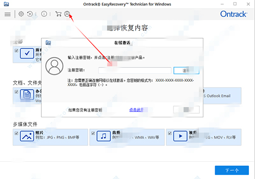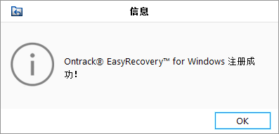 4.輸入許可證密鑰后,點(diǎn)擊注冊,就可以將目標(biāo)計(jì)算機(jī)上的EasyRecovery易恢復(fù)軟件激活成功,從而用來恢復(fù)丟失的文件。