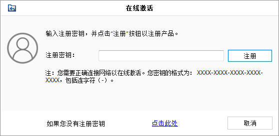 打開軟件,用鼠標(biāo)單擊左上角的注冊按鈕,彈出在線激活界面