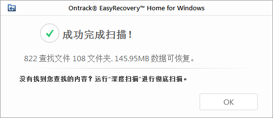 掃描完成后,會彈出如下圖所示的成功完成掃描對話框,直接單擊OK即可。