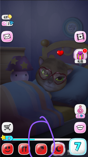 1、打開“我的安吉拉”,就看見一直臟兮兮的貓。趕緊帶她去洗漱,點(diǎn)下面的浴霸。