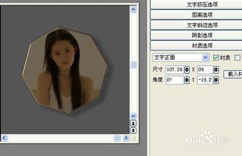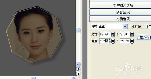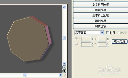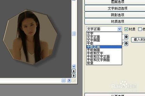 8、材質(zhì)選項(xiàng)—選擇文字正面,選一張自己喜歡的照片點(diǎn)擊載入材質(zhì),調(diào)節(jié)尺寸、X、Y、角度,讓照片到你想到的位置。